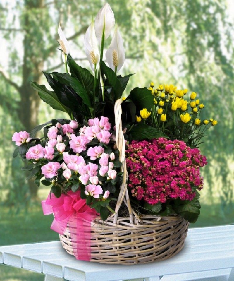 A beautiful basket featuring a variety of lush green plants, carefully arranged for a natural look. This refreshing mix brings life, calm, and a touch of nature into any space. Perfect as a gift or to enhance your home or office with lasting greenery.